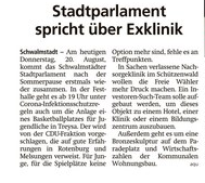 Die FREIE WÄHLER Schwalmstadt kommen auf die Stadtverordnetenversammlung vom 17.5.2018 zurück: Unter dem Aktenzeichen 022.321 wurde der Magistrat darum gebeten sich nach dem Zustand und den Eigentümerverhältnissen der Immobilie Nachsorgeklinik Schützenwald zu erkundigen. Herr Bürgermeister Pinhard teilte dazu mit, daß es noch keine Gespräche mit dem Eigentümer gegeben habe. Dieses Thema stehe jedoch auf der Agenda.